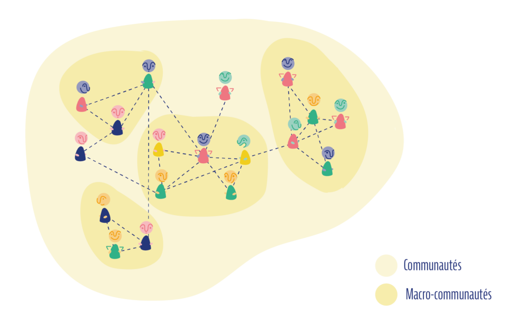 Une communauté se construit autour d’un groupe de personnes plus moins nombreuses connectées entre elles. Elles forment alors un réseau complexe de liens et d’interrelation.