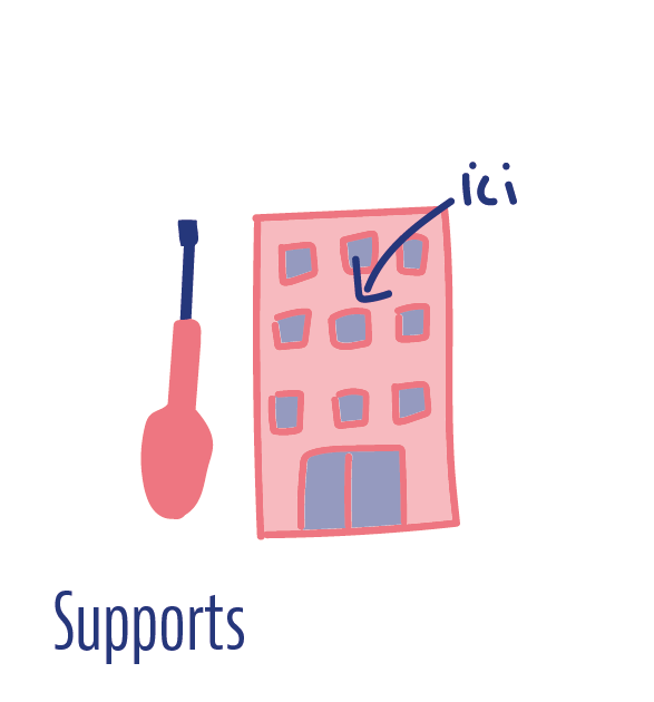 - Les supports sont les éléments qui soutiennent la ou les activités de la communauté et favorisent le faire ensemble. (un lieu, des logiciels de créations, un outil de jardinage …).