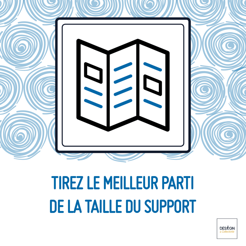 Lorsque vous réalisez un support en facilitation par le dessin, la taille du support papier ou numérique doit être réfléchie en amont. Vous ne pouvez pas mettre les mêmes infos dans un support de petite taille (ex: A5) en comparaison avec un support plus grand (ex : A2). Pensez à bien choisir une taille de support adaptée à vos besoins et au contexte dans lequel vous intervenez pour faciliter. Par exemple, si vous n’avez pas de mur disponible pour esquisser une fresque pendant votre réunion d’équipes, essayez de prévoir une feuille de taille plus petite, mais assez grande pour réaliser un visuel sur la table. C’est un bon moyen d’inviter vos collègues ou vos participants à participer.