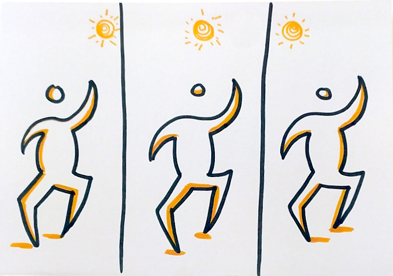 Est-ce que vous avez pensé aux ombres ? Ça fait toute la différence dans votre dessin, ça rajoute du volume et de la consistance à vos pictogrammes aussi simple qu’ils puissent être. Pour bien positionner votre ombre, il suffit d’identifier un côté du dessin pour l’orientation du soleil.