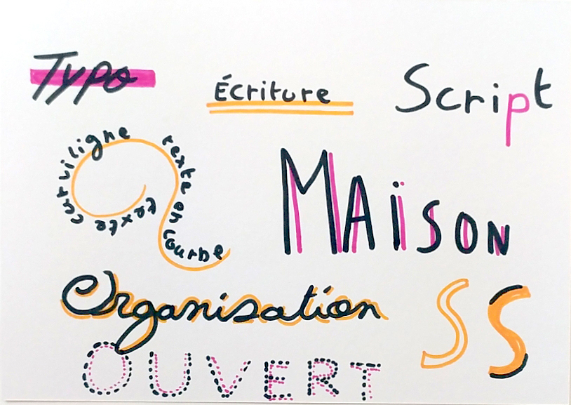Soyez créatif en variant les typographies ! C’est-à-dire dessiner des lettres avec des formes, des courbures et des épaisseurs différentes pour rendre plus impactant vos visuels. Pensez également aux lettres majuscules et aux lettres minuscules, à l’écriture cursive (“attaché”) et à l’écriture scripte (“détaché”).