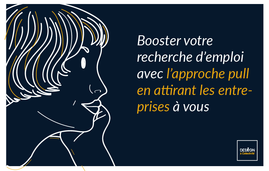 L’approche push ou top-dow correspond à la méthode classique. Vous partez du postulat que vous êtes à la recherche d’un emploi comme plusieurs autres personnes sur cette terre. Donc, vous cherchez et répondez à des offres d’emploi. Pour maximiser vos chances, essayez d’identifier des structures qui vous intéressent (ex : agences de design, agence de conseil en organisation, start-up…) et identifiez comment vous pourriez les aider. Cela vous permet d’allier une cartographie de l’écosystème qui vous intéresse avec les compétences que vous pourriez mobiliser, renforcer ou que vous devez développer pour travailler avec ce type d’entreprise. Je vous invite également à suivre leurs actualités, mais surtout d’aller à leur rencontre (ex : meeting, porte ouverte, conférences…) pour vous imprégner de leur vision et voir si elle vous correspond.
