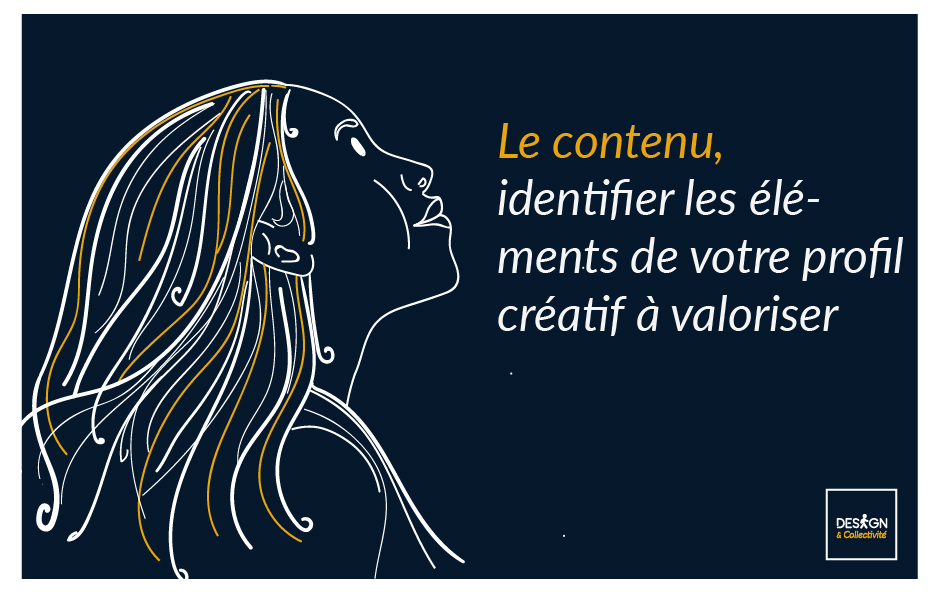 - Étape 1 : Le contenu, identifier les éléments de votre profil créatif à valoriser (histoire, compétences, vision, objectifs, rêves…)